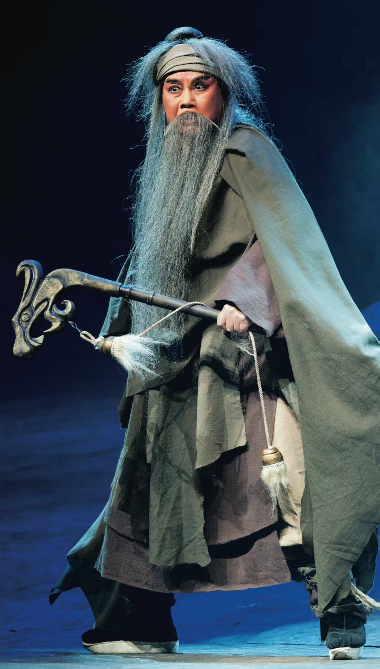 在他的艺术重塑下,传统故事中的人物褪去了概念化的外壳,变得血肉丰满、可亲可感。他塑造的程婴,不再是符号化的忠义化身,而是一个有恐惧、有挣扎、有舐犊之情,却最终为承诺与道义毅然赴死的普通人,这一角色也助力他摘得了中国戏剧表演最高奖——“二度梅”(两次中国戏剧梅花奖)的桂冠;他演绎的张元秀(《清风亭上》),则将天下父母无私付出与痛失所爱的极致悲情,灌注于每一句唱腔、每一个身段之中,那一声声泣血般的呼喊,直戳观众心窝,催人泪下。这种“以人为本”的表演哲学,使得古老的故事在当代剧场中重新激荡起强烈的情感共鸣。