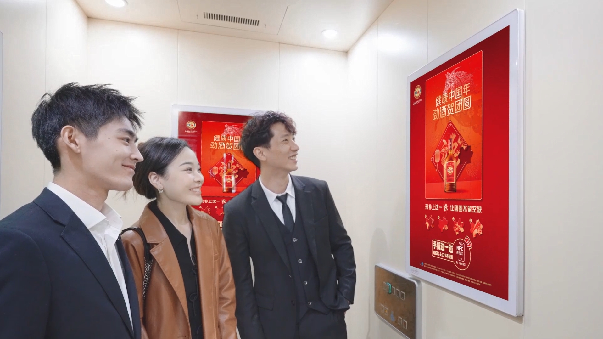在社区梯媒等高频触点里,劲酒借助脑洞谐音梗、轻量化互动装置以及“碰一碰”玩法等创意形式,让养生自然渗透进春节日常——它不是必须完成的“健康任务”,而是自然融入回家路上、电梯间、祝福过程中的轻松存在,悄然成为烘托健康团圆氛围中的重要元素。