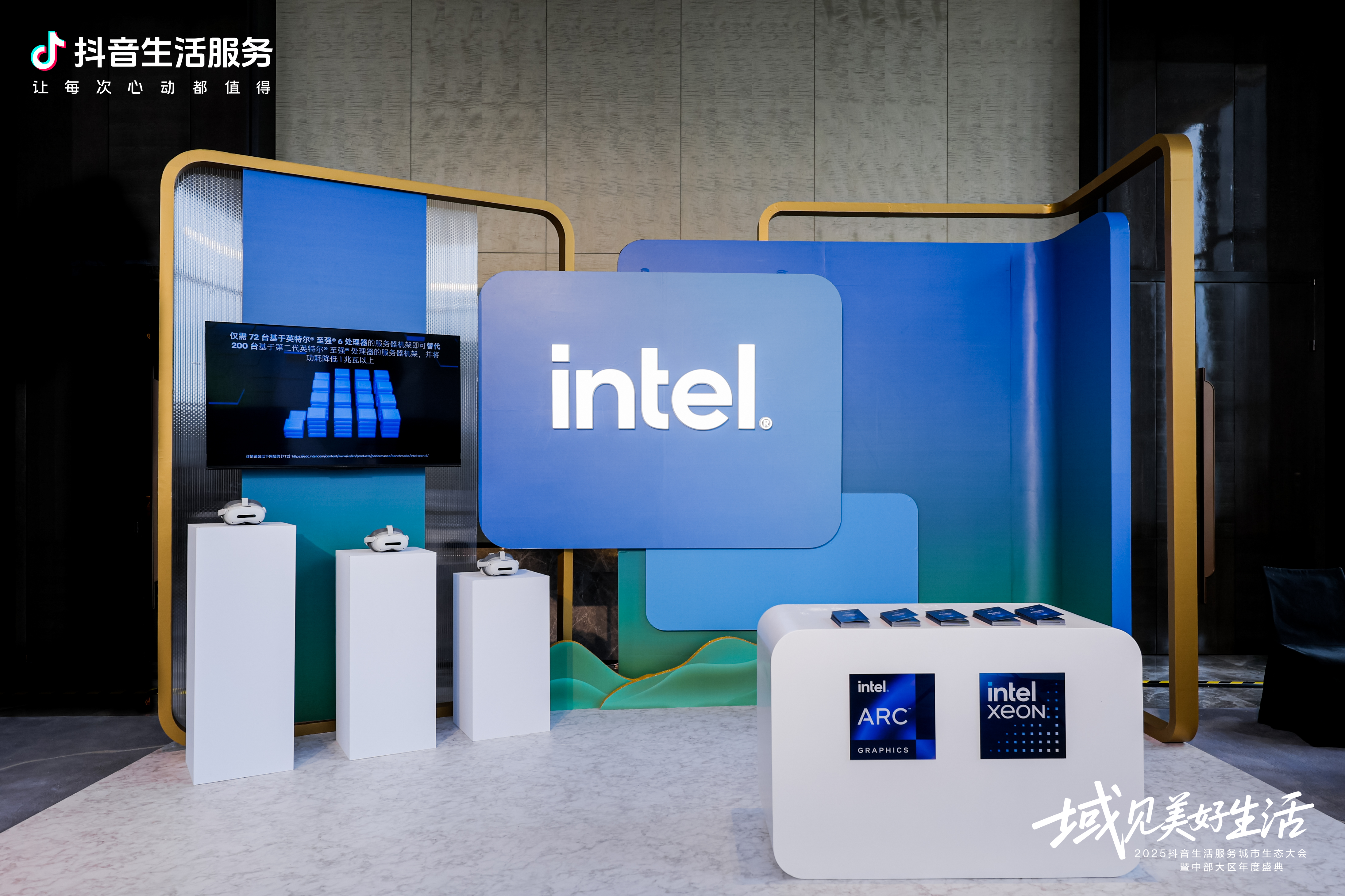 近日,「域见美好生活」2026抖音生活服务城市生态大会暨中部大区年度商家盛典在杭州顺利收官。英特尔作为大会独家数字化合作伙伴,携前沿技术方案与硬核产品矩阵出席大会,与抖音生活服务携手深度探索城市生态共建,为杭州城市建设的数字化迭代与高质量升级注入澎湃动能。