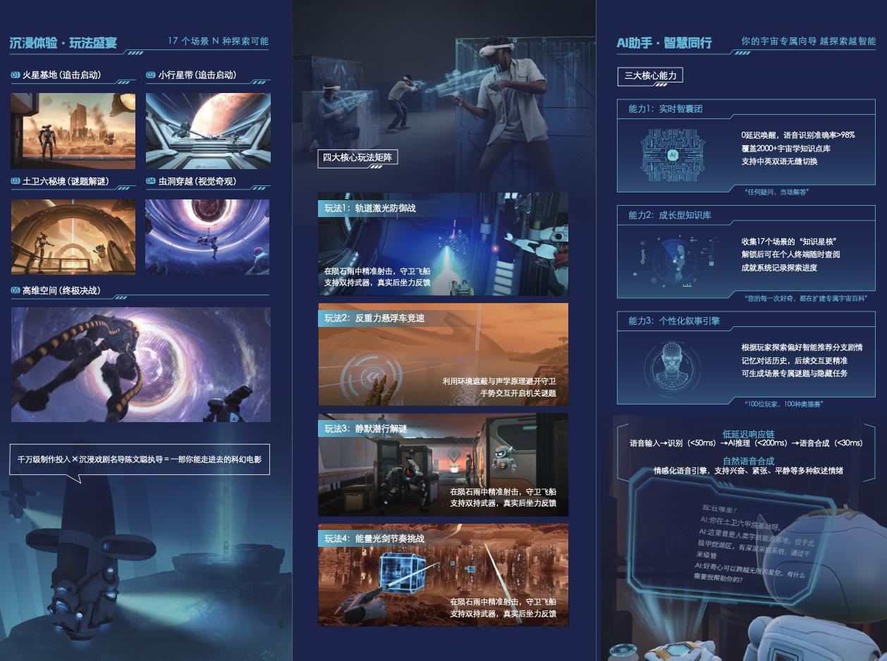 英特尔与 PICO 合作打造的《太空奥德赛》同样吸睛满满,这款精心打磨的沉浸式作品,以8K超高清画质与毫米级动作捕捉技术为核心,构建了跨越多个科幻场景的虚拟宇宙,让玩家可以摆脱“站桩式交互”局限,实现自由奔跑、实时对战的深度互动。英特尔技术加持下的AI助手,可以基于玩家决策提供个性化反馈,并能根据玩家体验中收集的数据生成专属训练集,实现不断进化。