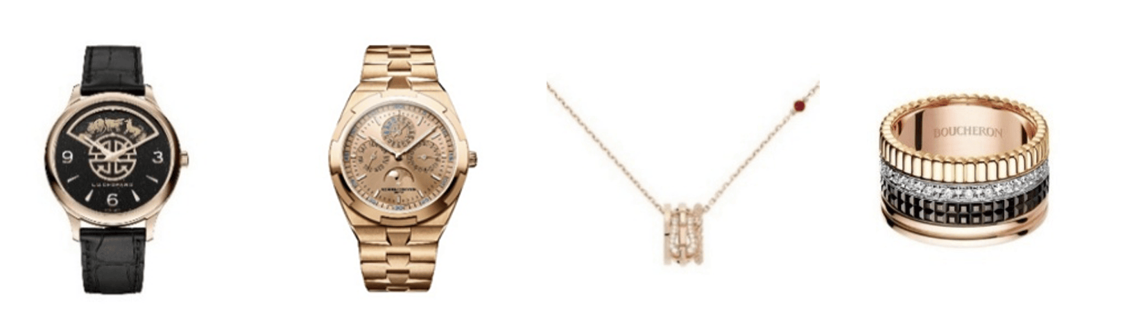 以时光为骥,载万象更新之禧——萧邦限量版L.U.C XP Urushi Spirit of Shí Chen腕表以传统的中国十二时辰为载体,表盘上依照时辰,分别对应不同的十二生肖动物;江诗丹顿的纵横四海系列超薄万年历腕表,配备三条可互换表带,轻松实现个性化搭配;Fred的18K玫瑰金镶钻及红宝石Force 10 Rise项链,赋予永恒优雅全新定义,以及宝诗龙经典Quatre Classique戒指——以四圈圆环设计为基础,通过黄金、白金、玫瑰金及棕色PVD镀层材质凸显其精湛工艺。