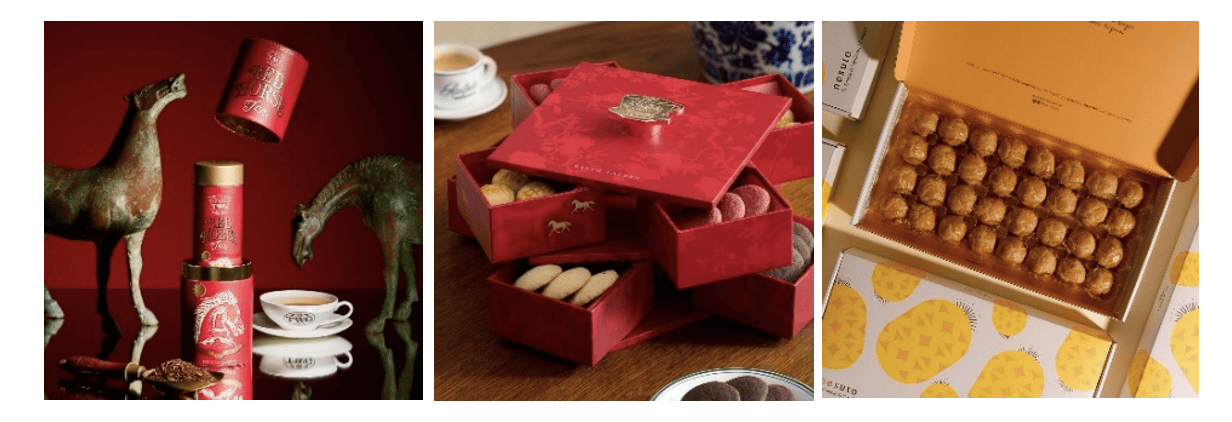 TWG Tea诚邀茶客品鉴鸿运骏马茶,这款限量版路易波士红茶,细腻味道融合玫瑰花瓣、芙蓉花瓣、熟红莓及鲜味柠檬香蜂草。TWG Tea店内购物,即赠限量红包封套。同时,Ralph's Coffee呈献农历新年曲奇礼盒庆贺佳节,内含四种诱人风味曲奇,礼盒上的牡丹与烫金骏马图案相映成趣,突出精湛传统工艺美学的魅力;café nesuto的佳节礼品凤梨酥,浓浓的焦糖黄油香草、柚子及焙茶口味,香气四溢,期待您前来品尝新春佳节的甜美与喜悦。